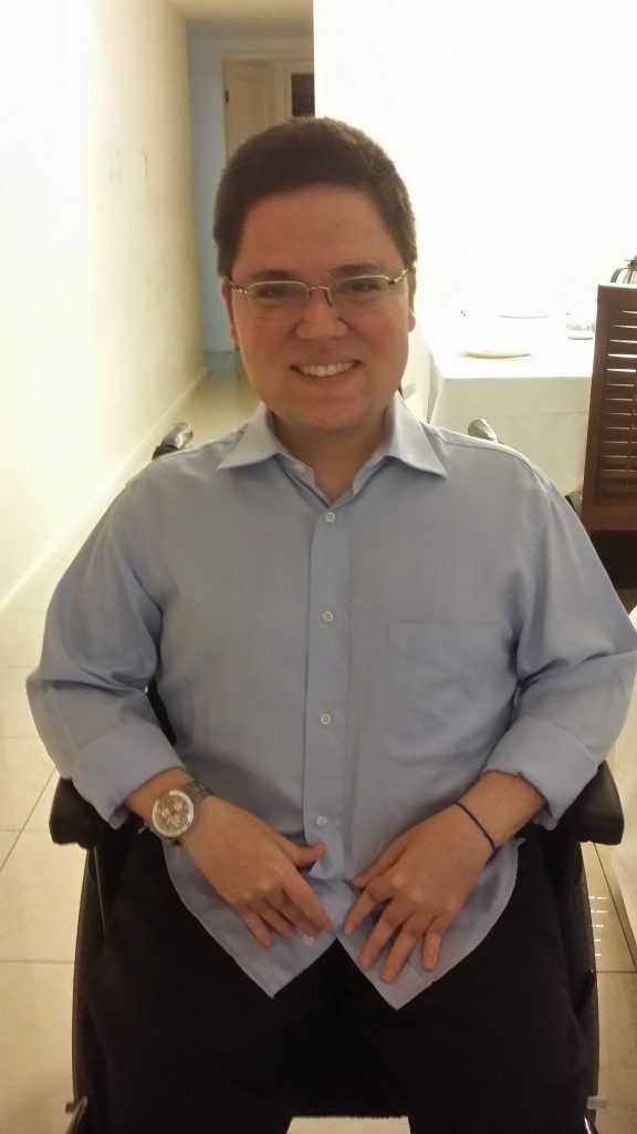 Meu nome é Júlio Barreto, tenho 27 anos, moro em Salvador, Bahia e fui diagnosticado com Distrofia Muscular de Duchenne aos 4 anos. Me formei em Engen haria Elétrica pela UFBA no início de 2010 com 22 anos, conclui o meu mestrado um ano depois, e hoje em dia faço doutorado também pela UFBA. Nas horas vagas gosto de assistir esportes, principalmente futebol, e sou torcedor do Palmeiras. Também gosto muito de sair para conversar com os amigos, de cinema e de música. Sou bem humorado, tenho muita força de vontade e fé em Deus.