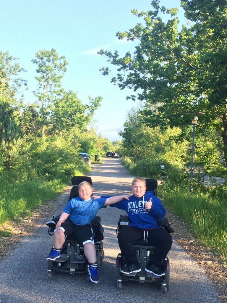 Hi! My boys have their own YouTube channel where they post what they do, different challenges and stuff they think is fun. One time they posted a video where they told about their disease. They are active with wheelchair hockey, and they travel on tournaments with the team. They are like other boys in the same age, busy with computers and gaming. Since we as parents are divorced they have two homes, witch means that they are lucky to get two birtdays, which they see as a positive thing.
